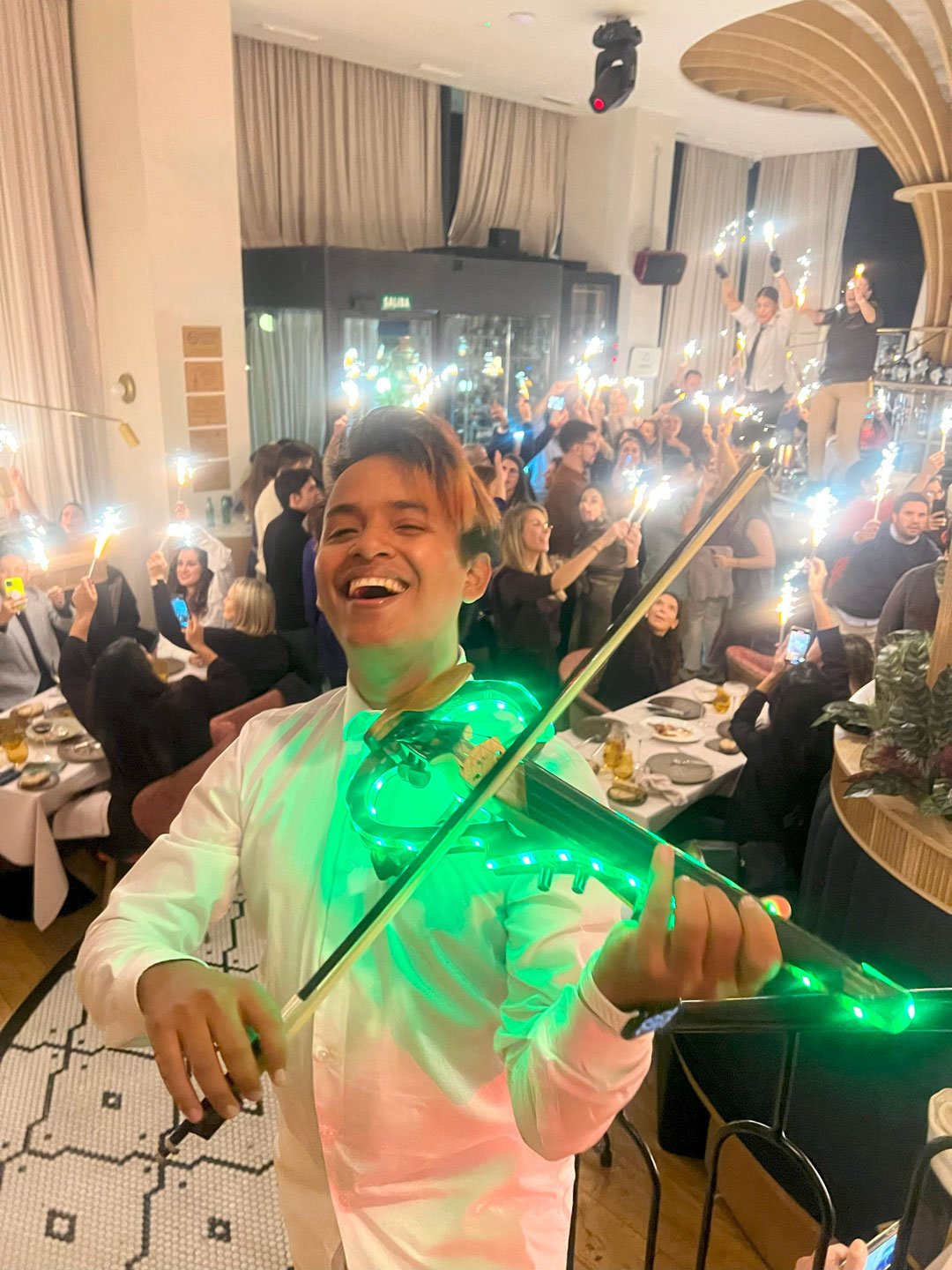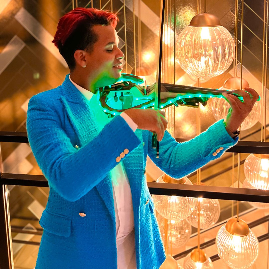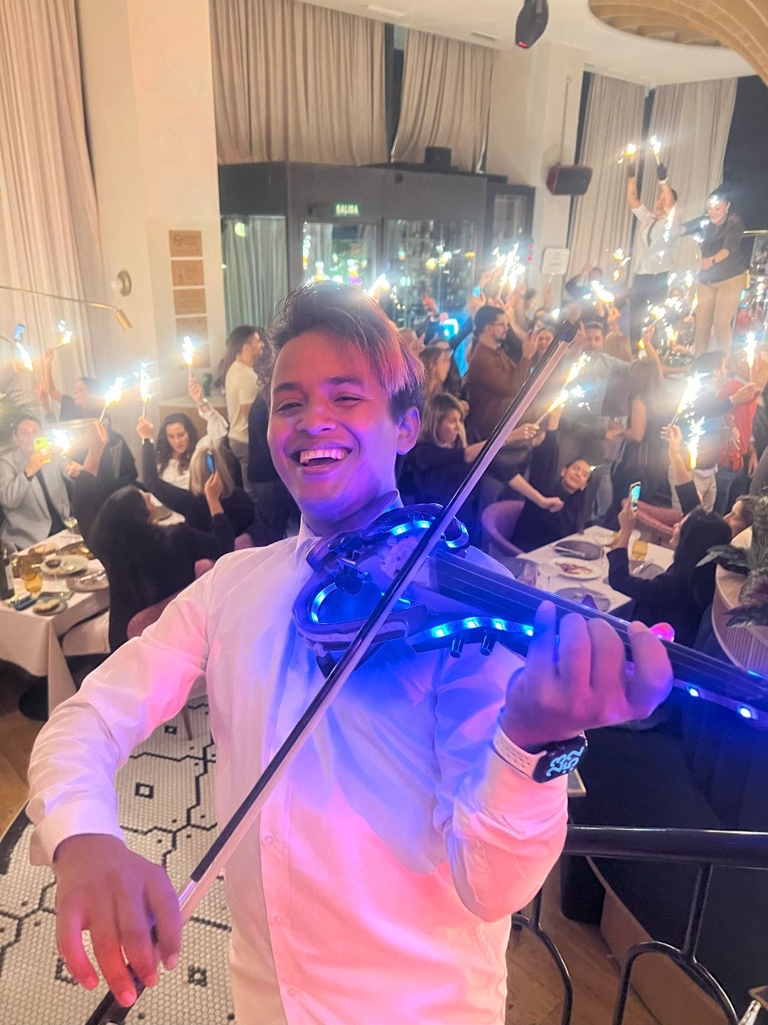Soy Israel Galindo, violinista profesional especializado en eventos privados y bodas. Mi objetivo es transformar tus momentos especiales en recuerdos inolvidables con la magia del violín eléctrico y servicios que engloban todo lo que necesitas para tu evento.